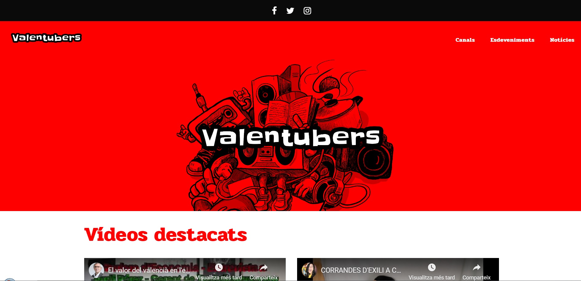 Els youtubers valencians estan d’enhorabona. Des d’aquest dilluns disposen d’un web, valentubers.com, renovat i dissenyat per l’estudi Grafema gràcies a la col·laboració de la Plataforma per la Llengua del País Valencià.