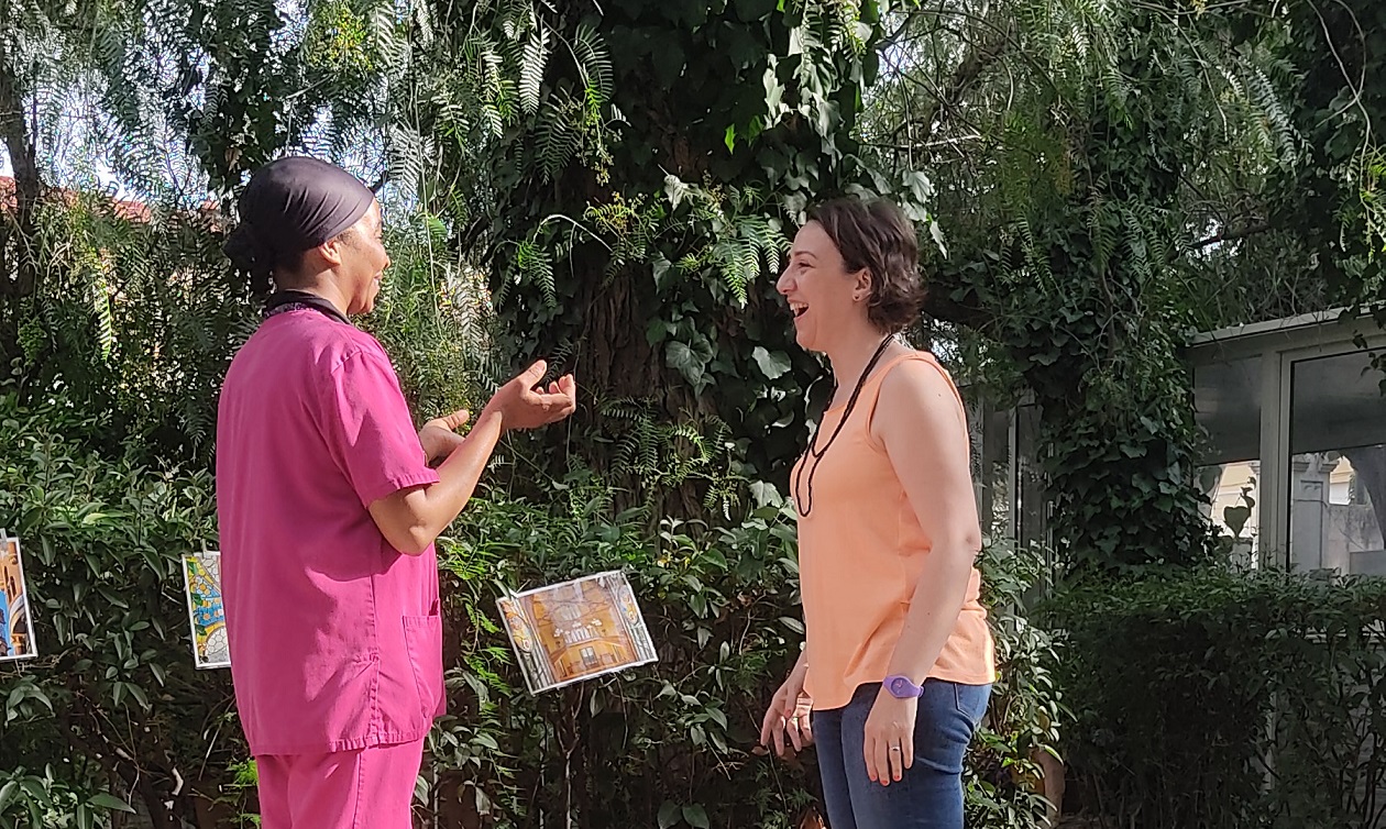 La Fatima, que cada cop té més fluïdesa amb el català, ha comprovat que els residents “estan contents” quan ella els parla en català i, fins i tot, l’ajuden a millorar el seu nivell de llengua, tot i que, sovint, canvien de seguida al castellà i ella els ha de recordar que li poden parlar en català. La Fatima, que va, a més, dos cops a la setmana a classes de català, assegura que les converses amb la Maica l’han ajudat molt a “millorar”. De fet, està tan convençuda de l’eficàcia de les parelles lingüístiques té en té una altra fora de la residència amb qui pot practicar, encara més, la llengua.