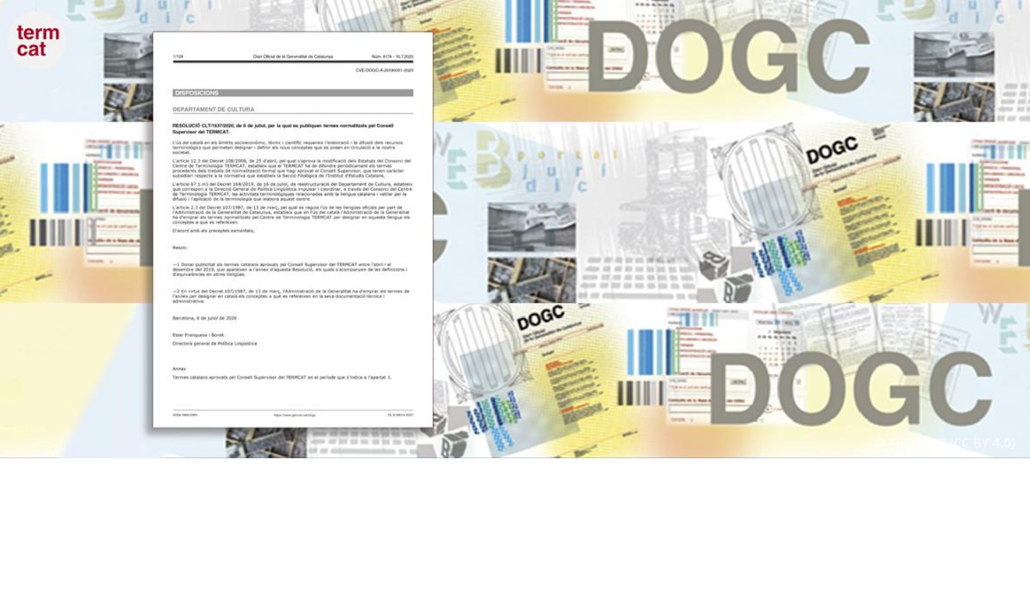El Diari Oficial de la Generalitat de Catalunya (DOGC) ha publicat 99 nous termes catalans normalitzats pel Consell Supervisor del Termcat durant el primer quadrimestre del 2023. Entre els més nombrosos hi ha els dels apartats dedicats a les ciències de la vida, les ciències de la salut, el turisme, el dret i el medi ambient.