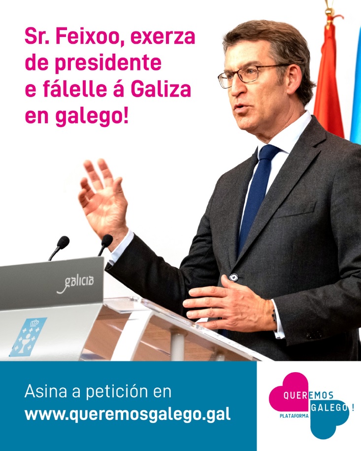Les entitats de defensa del gallec s’estan mobilitzant aquests dies contra el menyspreu que mostra el govern de Galícia cap al gallec en les comunicacions sobre la pandèmia del coronavirus. Segons denuncia la plataforma Queremos galego, que aplega més de 600 entitats, el president de la Xunta, Alberto Núñez Feijóo, ha “abandonat” l’ús del gallec “en exercici de les seves funcions, precisament en els moments de més trascendència” en plena crisi de la Covid-19.