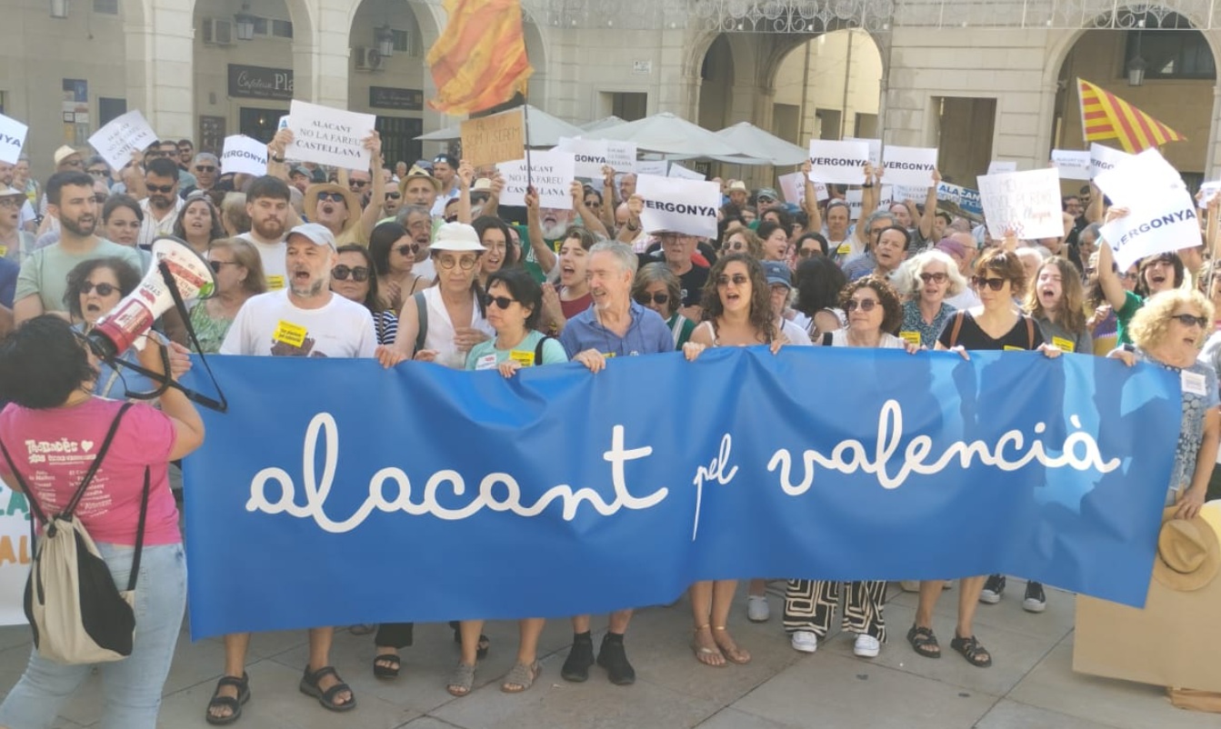Mentrestant, centenars de persones s’han concentrat a la plaça de l’Ajuntament per protestar contra la castellanització d’Alacant. Escola Valenciana ha advertit que declarar Alacant ciutat castellanoparlant “suposaria un retrocés històric”. “Eliminar el valencià de l’escola, l’administració i la vida pública és esborrar una part fonamental de la identitat alacantina”, alerta l’entitat. Plataforma per la Llengua, per la seva part, ha advertit que “canviar el predomini implica retallar el dret a aprendre en la llengua pròpia i oficial, i viola el dret de les famílies que han votat a favor de l’ensenyament en valencià”.