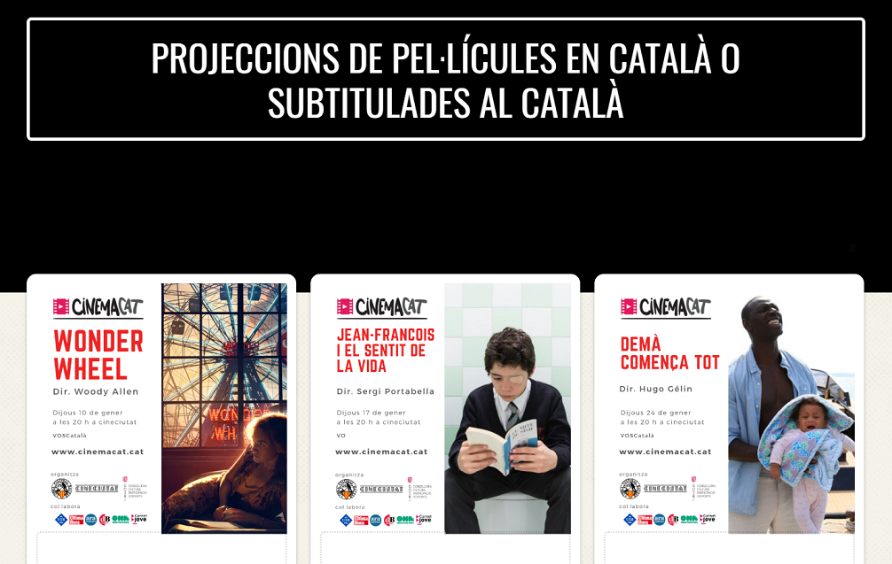 La programació de cinema es pot consultar a través del web de Cinemacat i de les seves xarxes socials. A banda de Wonder Wheel, el 17 de gener es podrà veure Jean-François i el sentit de la vida, de Sergi Portabella; el 24 de gener, Demà comença tot, d’Hugo Gélin; i el 31 de gener, Segon Origen, de Bigas Luna i Carles Porta. Al febrer es projectaran pel·lícules com Estiu 1993, de Carla Simón; Galveston, de Mélanie Laurent; Societat literària, de Mike Newell; i Revolució silenciosa, de Lars Kraume.