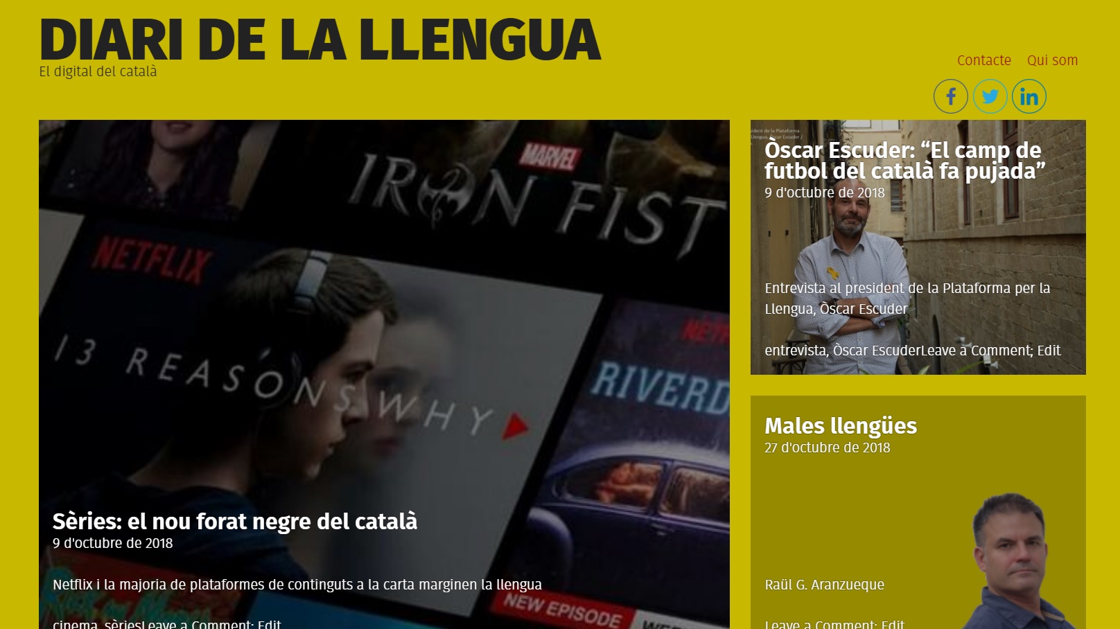 El Diari de la llengua s’estrena avui amb cinc temes: l’escassa presència del català en les plataformes de sèries i pel·lícules com Netflix, una entrevista amb el president de la Plataforma per la Llengua, Òscar Escuder, un reportatge sobre el camí de l’asturià cap a l’oficialitat, el projecte Common Voice per ensenyar català als ordinadors i mòbils i l’adaptació al món virtual del projecte de les parelles lingüístiques.
