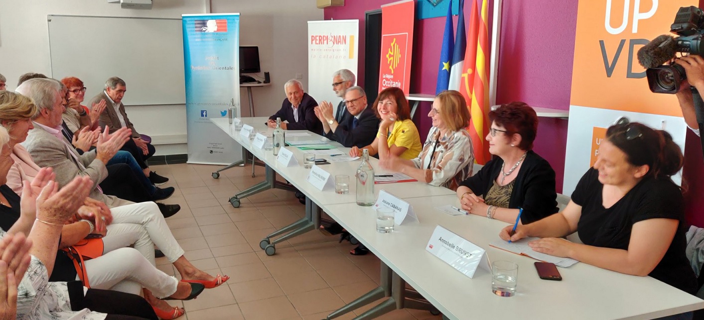 L’acte ha comptat amb la presència de la presidenta de la regió d’Occitània, Carole Delga, la presidenta del Consell departamental, Hermeline Malherbe, del prefecte de la Catalunya Nord, de dues representants de l’ajuntament de Perpinyà, Anabelle Brunet i Josiana Cabanes, del president del Sindicat intercomunal per a la promoció de les llengües occitana i catalana (Siocat), Francis Manent, i d’un responsable de la universitat.