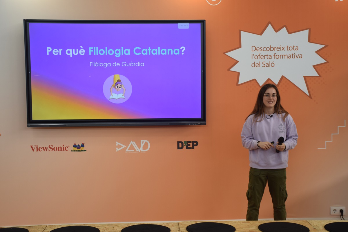 Foto: Aida Roca, la Filòloga de Guàrdia, presenta els estudis de Filologia Catalana al Saló de l’Ensenyament / R. G. A.