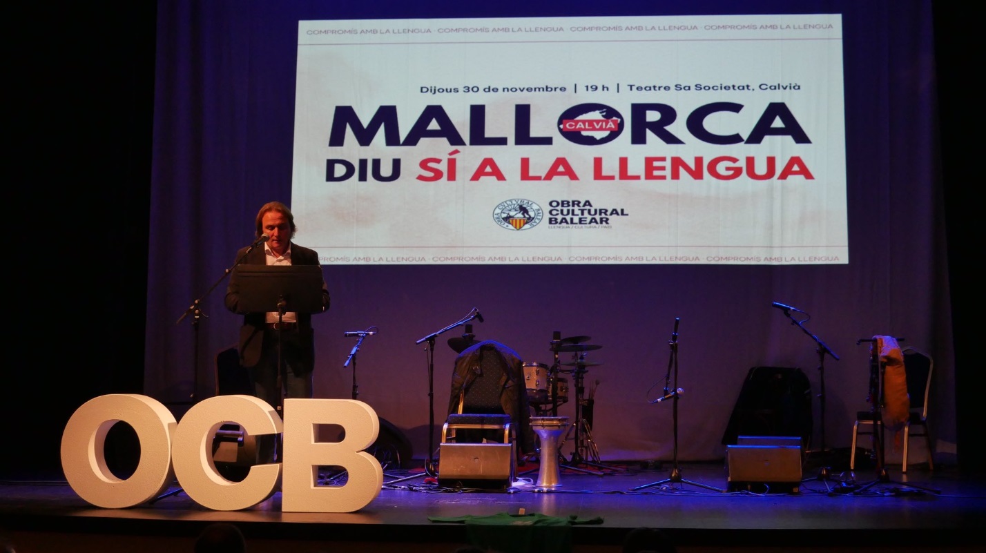 L’elecció de Calvià com a seu de l’acte no va ser casualitat. Aquesta ciutat s’ha convertit en un dels símbols de la lluita a favor de la llengua després que l’Ajuntament hagi aprovat una modificació del reglament d’usos lingüístics que estableix que el català deixarà de ser la llengua d’ús preferent del municipi, un canvi que, segons l’OCB, “no s’ajusta a la legalitat vigent”. “No deixarem que ens converteixin en una atracció lingüística. No som diferents, la llengua no es toca”, van advertir Joana Maria Mas, directora del CEIP Ses Rotes Velles, de Santa Ponça, i presidenta de l’Associació de Directors d’Educació Infantil i Primària de Mallorca(ADPIMA), i Joan Bort, coordinador lingüístic de l’IES Son Ferrer, de Calvià.