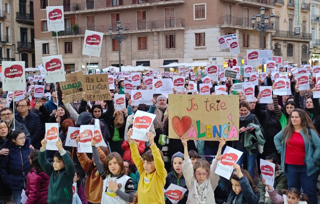 Sota els lemes “Sí al valencià” i “Tria valencià”, més de 2.000 persones s’han aplegat a la plaça de la Mare de Déu de València per denunciar “l’arraconament del valencià en el sistema educatiu”, segons assenyala el Sindicat de Treballadores i Treballadors de l’Ensenyament del País Valencià (STEPV). A Castelló de la Plana, la concentració, amb la participació de centenars de persones, s’ha fet a la plaça Major, mentre que a Alacant, l’escenari ha estat la plaça Sèneca. També hi ha hagut una protesta amb centenars de persones a Crevillent.