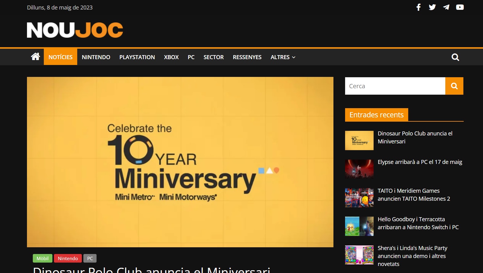 El món del videojoc compta, des del mes passat, amb un nou diari digital de notícies sobre el sector. Es tracta del portal Nou Joc, creat per Adrià Martínez, un aficionat als videojocs que fa anys que participa en diferents comunitats d’aquest àmbit en català, segons explica al Diari de la llengua.