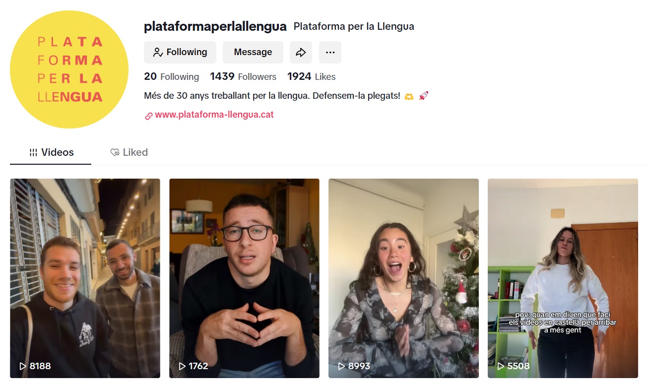 Plataforma per la Llengua s’estrena a TikTok per arribar als més joves i combatre la catalanofòbia