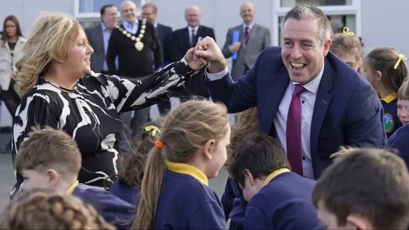 Foto: Visita del ministre d’Educació nord-irlandès, Paul Givan, a Gaelscoil Aodha Rua, a Dungannon / @paulgivan