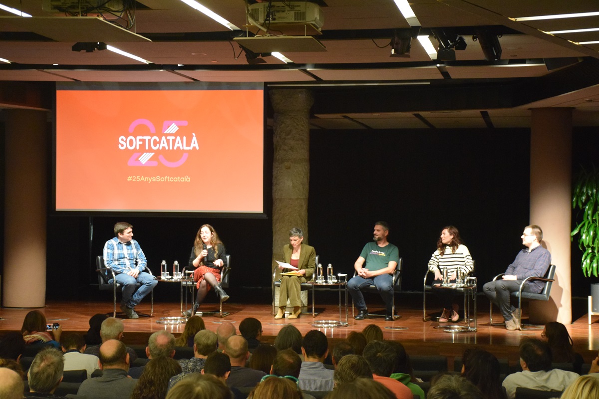 Jordi Mas, Jordi Coll i Miquel Piulats han relatat, acompanyats de la periodista nord-catalana Júlia Taurinyà, els inicis de l’associació, constituïda del 2 d’octubre de 1998, amb la primera missió de traduir el navegador Netscape al català a la qual se li han anat sumant d’altres al llarg dels anys com catalanitzar l’editor de textos Open Office o la creació del corrector, el traductor i el diccionari de sinònims, les tres eines més utilitzades pels usuaris actualment.