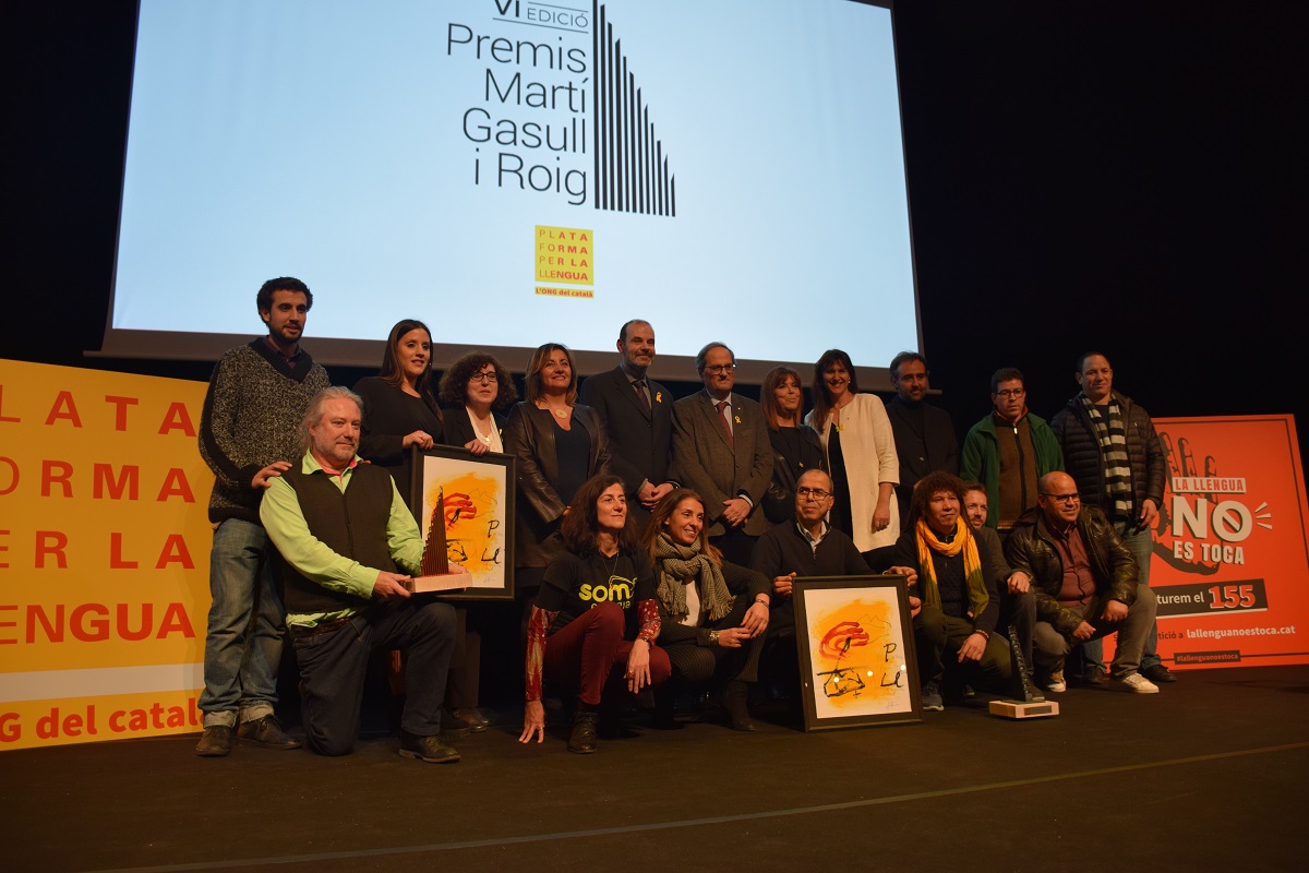 La cooperativa comercialitzadora energètica Som Energia ha guanyat la VI edició del Premi Martí Gasull i Roig amb què la Plataforma per la Llengua reconeix la tasca a favor del català d’una persona o entitat. El nom del vencedor del premi, dotat amb 3.000 euros, s’ha fet públic en la cerimònia d’aquest dilluns al teatre Poliorama de Barcelona, que ha estat presidida pel president de la Generalitat de Catalunya, Quim Torra, i ha comptat amb la participació, via videoconferència, del president Carles Puigdemont. També han assistit a l’acte la consellera de Cultura catalana, Laura Borràs i la seva homòloga balear, Fanny Tur.