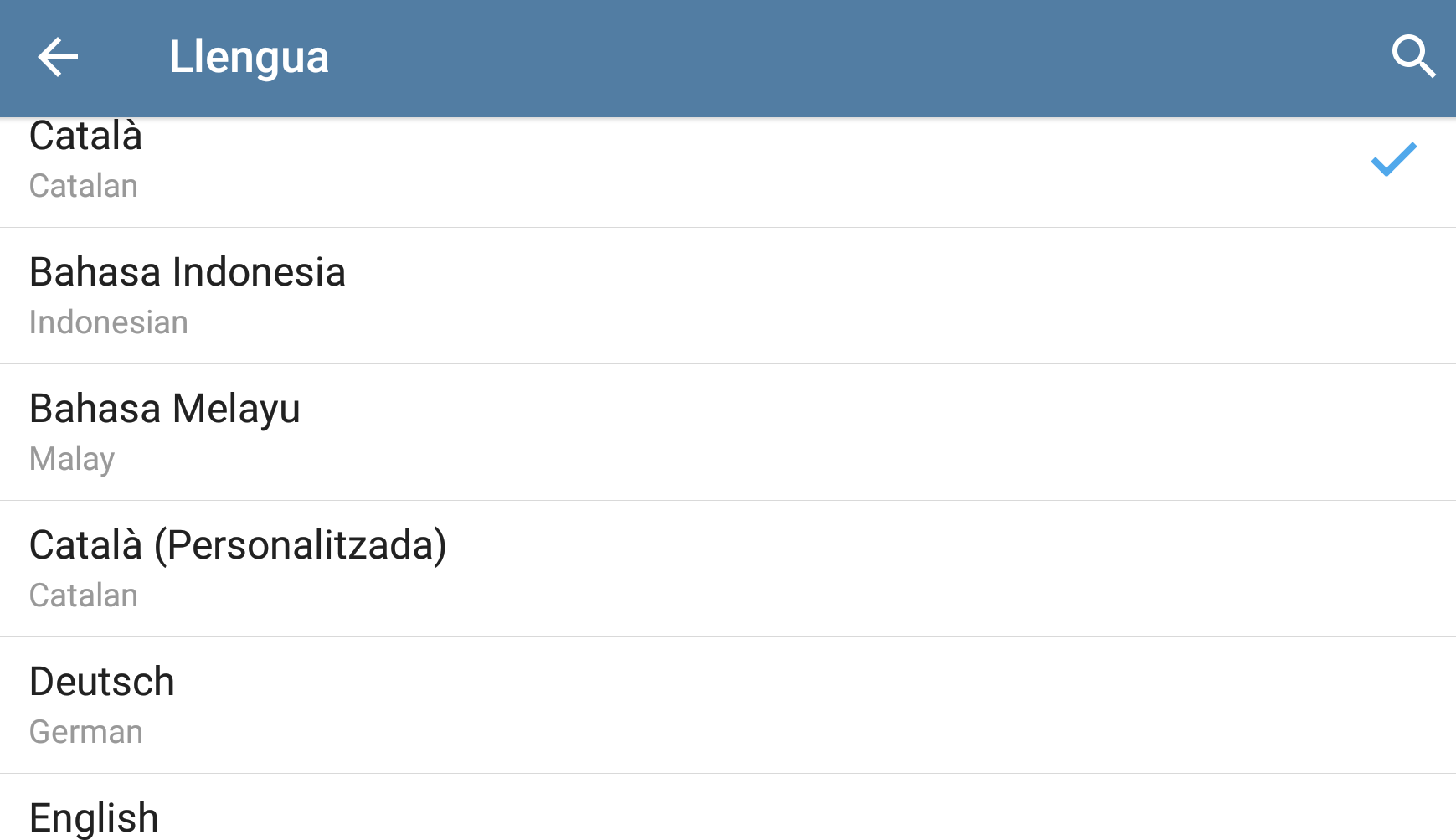 Telegram incorpora el català en el menú de llengües oficials